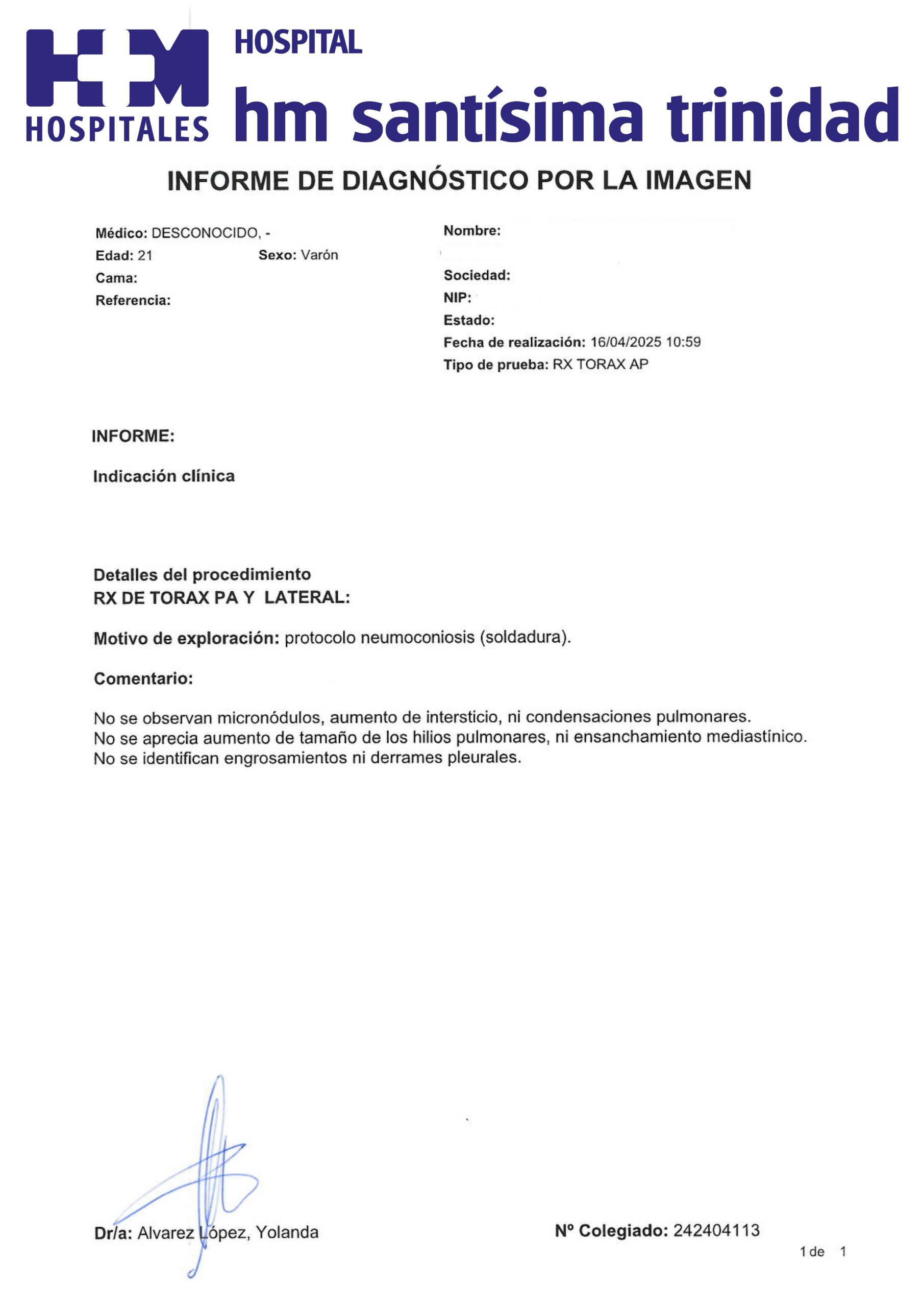 Informe radiológico de Alicia Pérez Gómez Contenido del informe radiologico. Informe del 17/07/2025 Volfer a filtro por fechas. Volfer a filtro por fechas.
