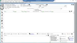 Desde esta ventana, se accede al módulo de pacientes pulsando el botón correspondiente, ubicado en la parte superior izquierda del área de iconos verticales. Este botón está representado por un icono con la silueta de una persona acompañada de un fonendoscopio (ver imagen). Al pasar el cursor por encima, aparece la etiqueta “Pacientes”, lo que confirma la funcionalidad del acceso.