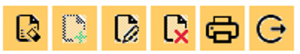 La interfaz de Tungsteno incluye un conjunto de comandos normalizados para la gestión de registros, presentes en la mayoría de ventanas del sistema. En la imagen que acompaña este texto se muestran los seis botones más habituales, ordenados de izquierda a derecha.