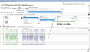 Una vez ejecutada la propagación, el sistema muestra en la parte inferior de la ventana un listado detallado de las citas creadas automáticamente (ver Figura 11). Esta tabla ofrece información clara sobre: